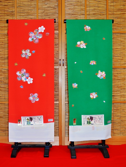 この小紋は7歳のお祝い着のためのきもの地ですが、一反を縫い詰めて仕立てますので、16~18歳までお召しいただけます。数年前まではわたしもこのような小紋をお勧めしていました。最近は訪問着になった形の仕立て上がりが全盛ですので、お勧めすることもなくなっていたのですが、外国でもお召しになられる立場の方が、既成の訪問着のお祝い着はどうしても避けたい・・・とのご意向で、本友禅のこの小紋を思い出して京都に尋ねました。もう染めていないのでは…と思っていたのですが、元気に継続なさっておられました。既成の訪問着は友禅のものは少ないです。本友禅の訪問着と比べては、この小紋のほうが圧倒的に安いです。それと、十代いっぱいお召しいただけることがけっこう値打ちがあると思います。約10万円くらいで仕立て上がります。生地、染めともにきちっとつくられた友禅の仕事です。このような7歳のきものもございます。一度だけなら貸衣装が簡便でいいと思います。機会があるときにはきものを着せて・・・と思われる方がございましたら、このような小紋のきものもお考えの中に入れていただきたいと思います。