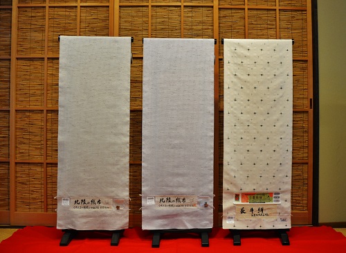 先日、降ってわいたように突然、米沢紬をぜひとも・・・・との話があり、50点ほど届きました。わたしも全部は買い取れませんので20点たらず求めました。いずれも吟味した品々ですから、品質はとてもいいものばかりです。上の二点は織機ですが、今まで皆様にお求めいただいてきた紬ですから、単衣にも袷にもまた、コートとしてお求めいただいています。¥58,000(外税)でおねがいいたします。下の置賜紬はとてもいいものです。単衣にも袷にもよく、米沢を代表する紬の一つです。¥85,000、-(外税)でお願いします。