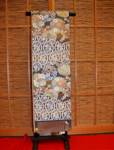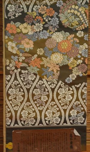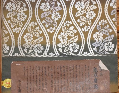 証紙番号2291、田原静織物の唐織袋帯をご覧ください。3点入りました。田原さんは中堅の機屋さんで、織機で織っておられますが、良心的な織と値段も抑えてたくさんの方にお求めいただこうと努力なさっておられます。わたしも普段に求めみなさまにもご覧いただいてまいりました。今回は事情がございまして、破格の値段でお求めいただきます。¥45,000、-(別税)でお願いいたします。